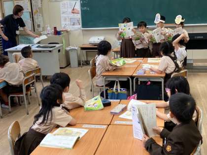 発表をします。みんなに聞こえるように「3」の声の大きさではっきり音読できました。