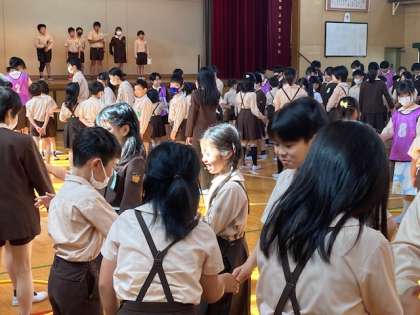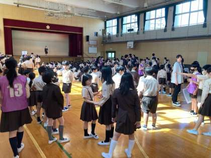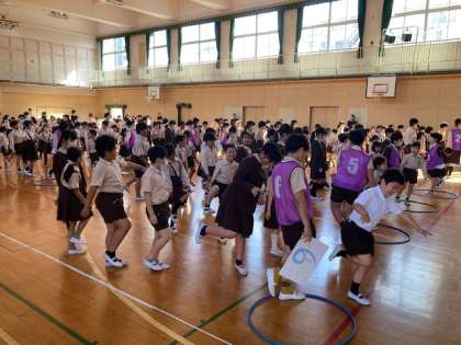 隔週で火曜日の朝は、たてわり班で集会委員会の考えたゲームやクイズをします。