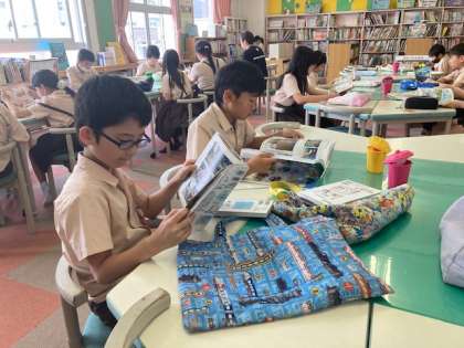 図書館では読みたい本を選んで時間いっぱい読書に励んでいます。