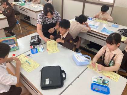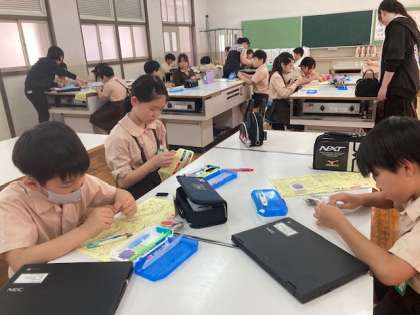 図工はカッターを使って切り絵を作っています。手先の細やかな作業に集中しています。