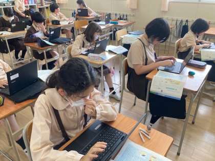 国語「いざというときのために」は、昨日に引き続き、ネットの情報を手掛かりとしながらまとめていきます。ネット情報が正しいことを確かめて作業をしています。