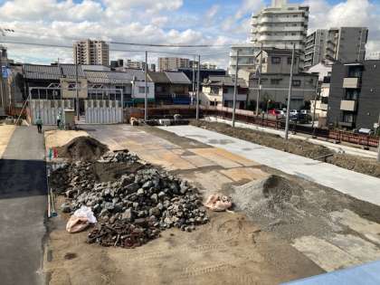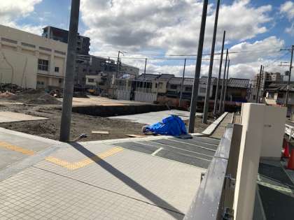 正門がつきました。運動場の地下貯水槽も形ができてきました。