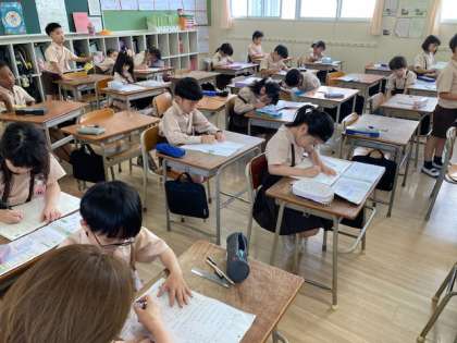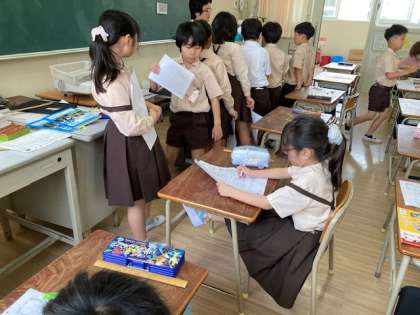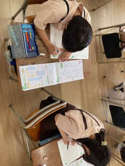 月曜日の5時間目。気温も上がって集中しにくい時間帯ですが算数のテストや間違い直し、漢字練習を頑張っています。