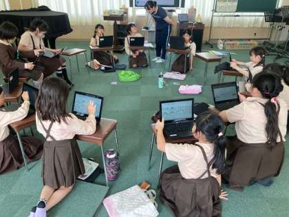 ミュージッククラブは「カエルの合唱」の変奏曲をタブレットを使って作曲しています。