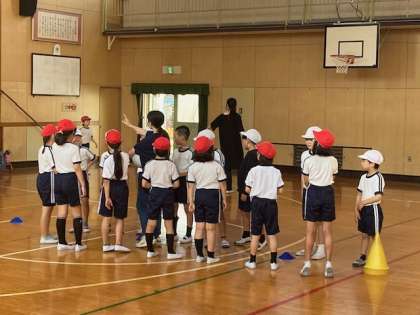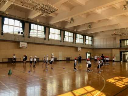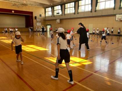 体育「ドッヂボール」は、ボールを勢いよく投げるフォームを確かめました。腕の振り方や視線の位置等、意識してゲームをしました。投げる事を意識しました。