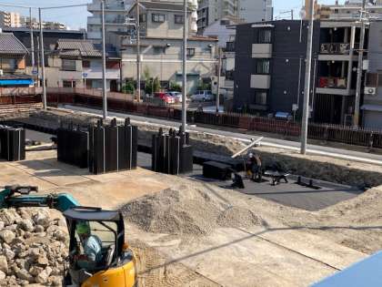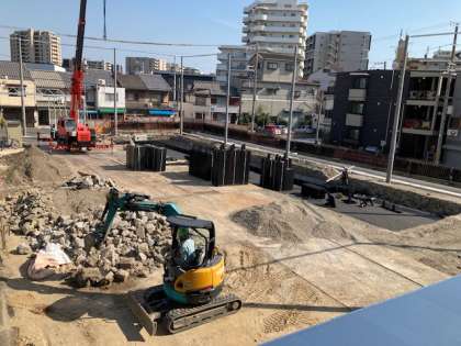 貯留槽のための資材搬入が進み、瓦礫の撤去もはかどっています。
