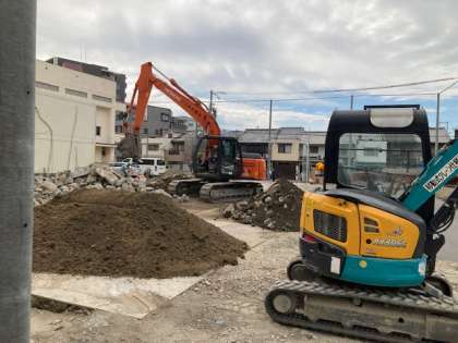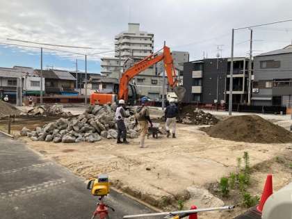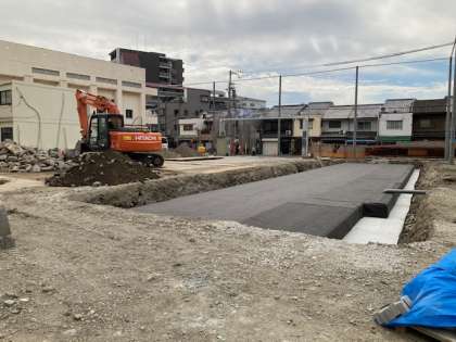 貯留槽の下地ができました。土や瓦礫の仕分けも進んでいます。