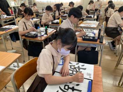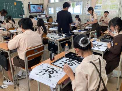 習字「湖」はバランスに気を付けながら名前を書き終わるまで集中して仕上げました。