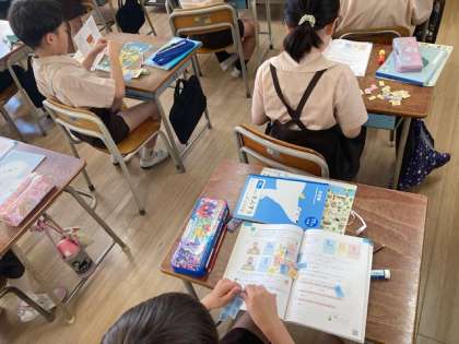 算数「数のしくみをしらべよう」では数字カードを使って実際に量感を確かめました。