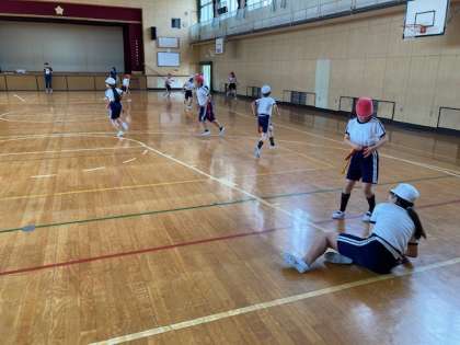 体育はプール前にできる「尻尾取り」をしました。作戦を考えながら個人戦やチーム戦をします。