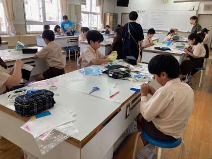 家庭科「小物作り」は形を工夫しながらお気に入りの小物を集中して作っています。