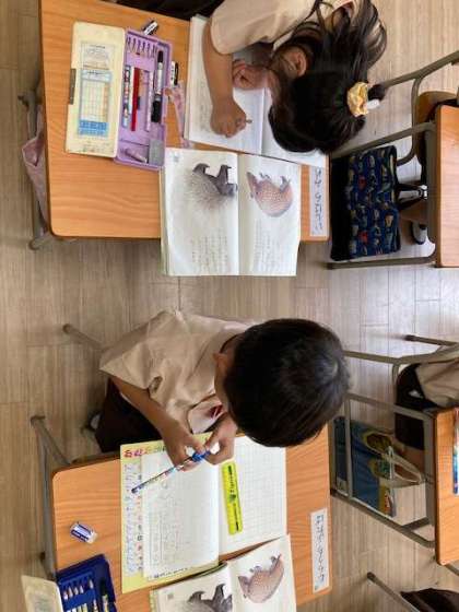 国語「どうやみをまもるのかな」はいろんな動物の様子を読み取ってノートにまとめていきます。
