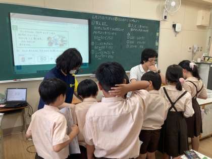 算数「数の大小」では決まったお金で「買える・買えない」を考えました。答えの見通しに繋がる学習です。早く終わればタブレットでドリル練習をしています。