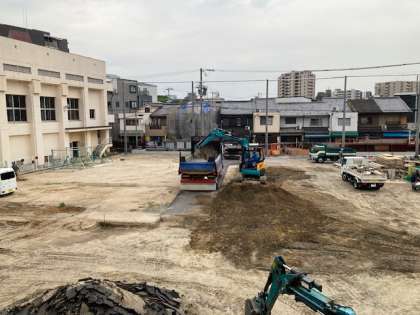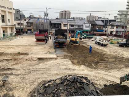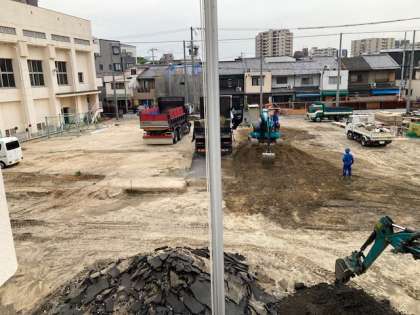 運動場の整地が始まりました。古い土を取り除き、砂利状の層を作って水はけを改良した後に真砂土で仕上げるそうです。