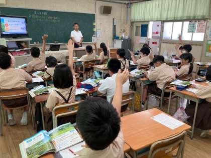 理科「夏の生き物」では春の様子と比べて違いを確かめます。