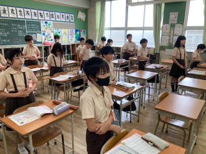 音読「ゆかいに歩けば」はお腹から声を出すことを意識しながら、スタッカートに気を付けて歌いました。