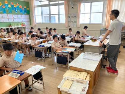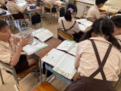 算数「水のかさ」は長さと同じように単位(dl)がある事を学習しました。2dlが牛乳1つ分です。