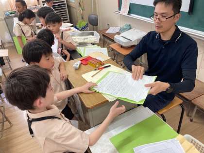 国語「こんなことをしているよ」では、心に残った出来事を作文にまとめています。