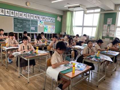 図工はキラキラ作品づくりを進めています。個性が光る作品に仕上がってきました。