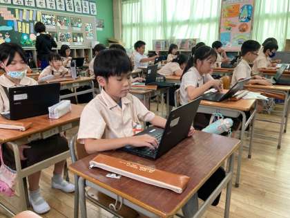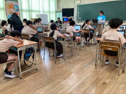 音読のテストはタブレットを使っています。使い方にも慣れて活用できるようになってきました。