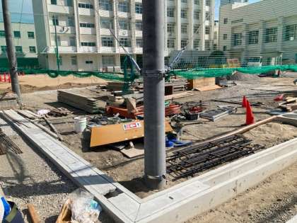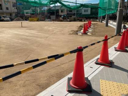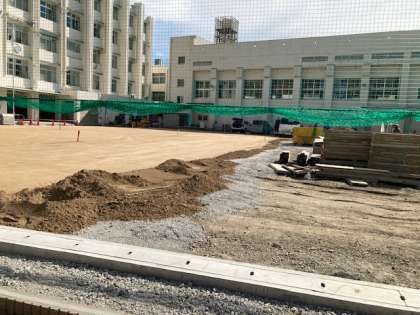 運動場の半分程度、整地が終わりました。整地に合わせて樹木の植栽が始まります。