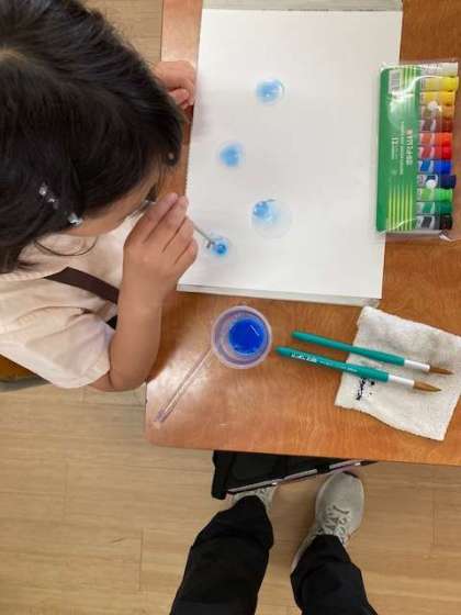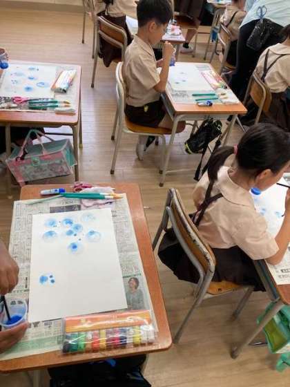 図工「海の生活」はストローを使って模様づくりを楽しみました。ゆっくり優しく息を吹きかけると素敵な模様が生まれます。