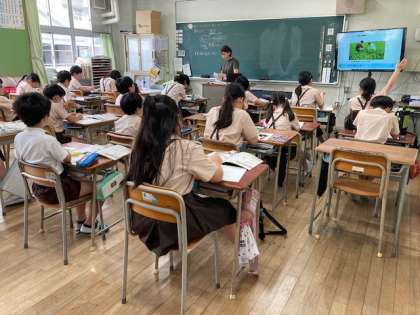 社会「米づくりを支えている人々」は資料を見て気付きを出し合っています。