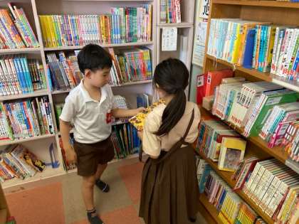 中休みは図書ボランティアの方のお陰で図書館開放があります。