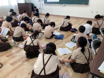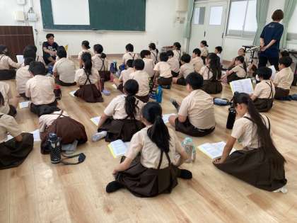 林間事前指導は、全員で予定や持ち物を確かめました。