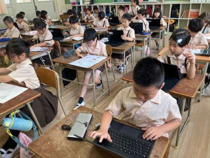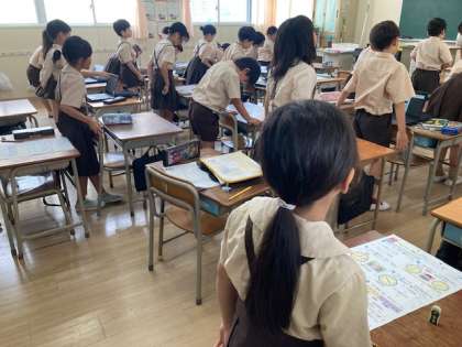 学習の復習をしています。授業終わりのチャイムまで集中していました。