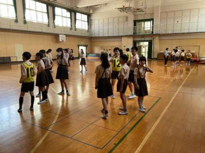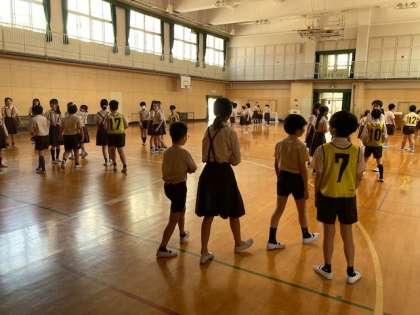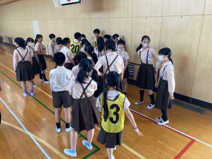 学年合同のお楽しみ会をしています。飾り付けやルール説明等の役割を分担して責任を果たします。