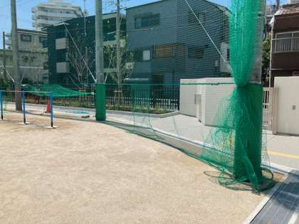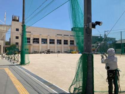 正門の照明や花壇への防球ネット、支柱へのカバー等、安全面の配慮も進んでいます。