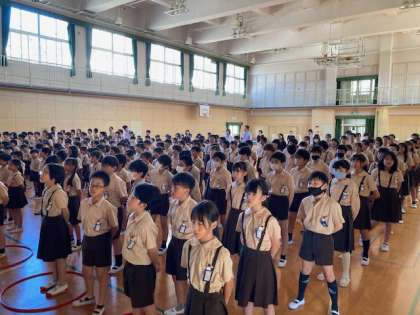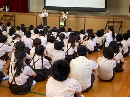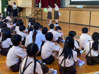 5年生児童が夏休みの思い出や2学期に頑張りたい事を発表しました。堂々と発表する姿に成長を感じました。