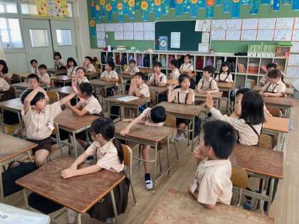 夏休みの出来事を聞きました。久しぶりに友だちと会って何となくウキウキします。