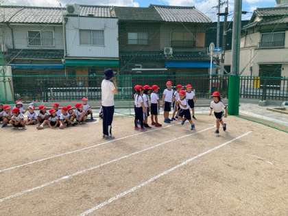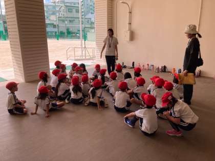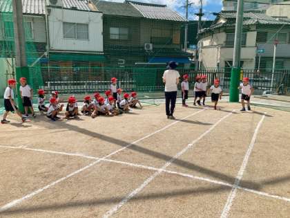 初めて野里小学校の運動場で体育をすることができて大喜びです。