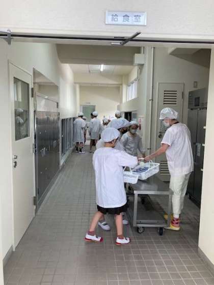 給食が始まりました。夏バテしないように好き嫌いせず、よく噛んで残さず食べることができるよう励ましていきます。