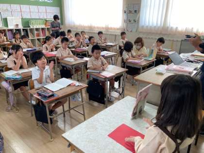 国語「むかし話をしょうかいしよう」ではお気に入りの昔話を紹介しています。読書への関心が高まっています。