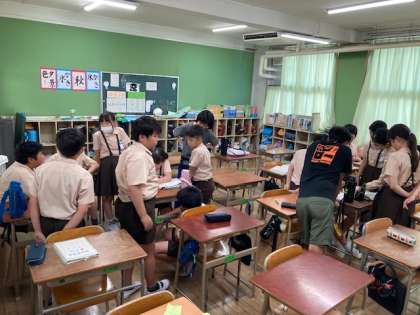 運動場が使えるようになったので色々な役割も必要になってきました。みんなが気持ち良く学校生活を送る事ができるよう責任を持って活動を進めていきます。