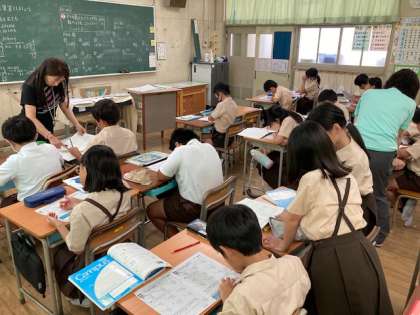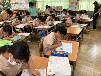 算数「割り算」では筆算の仕方を考えたり、仮の商を立てて計算したりして習熟を図っています。