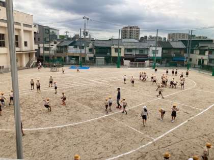 20分休憩の時間はボールを使った遊びをしています。安全面に気をつけて楽しく遊んでいます。