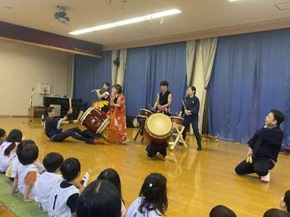 1年生は昨日、太鼓の演奏を聴きに野里幼稚園へ行きました。