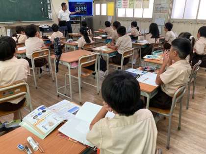 総合的な学習の時間「多様性・環境」の出前授業を受けました。タブレットを使って興味深く活動することができました。