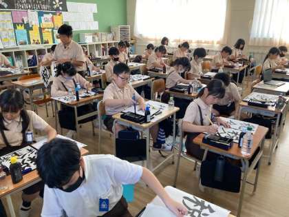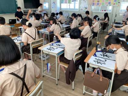 習字は「税金」を字形やバランスに気をつけて集中して書いています。