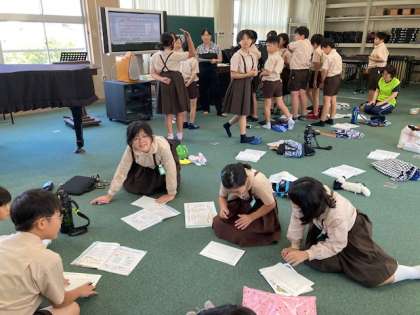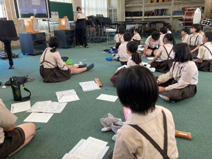 音楽は班で相談して曲のイメージを考えました。音の重なりを工夫して曲のイメージに近づけていきます。