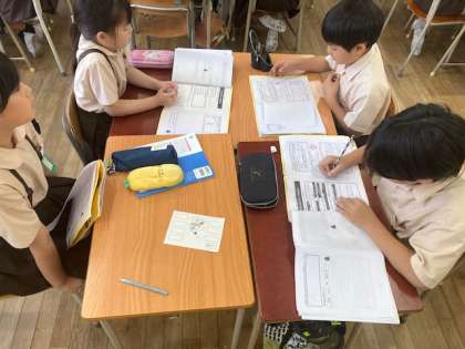 総合的読解力「災害に強い町づくり」について意見交換をすることでお互いの考えが深まってきています。