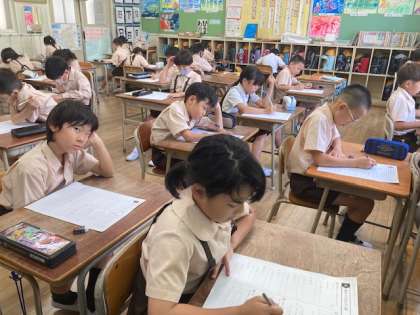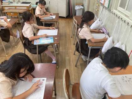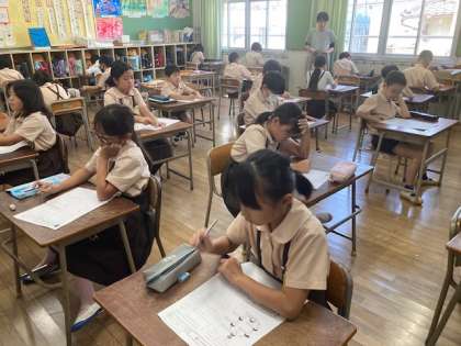 算数「あまりのあるわり算」の単元テストに取り組んでいます。