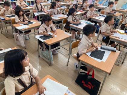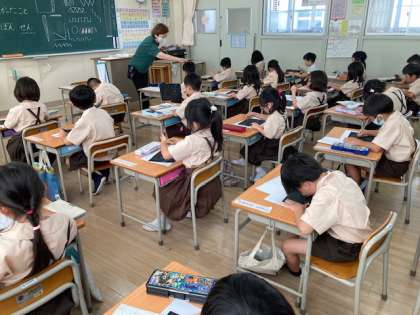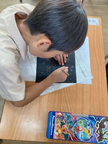 ?図工「たのしかったこと」は一本線でこすり出しをしました。