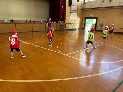 体育館でドッヂボールをしました。ルールを守ってゲームを楽しんでいます。