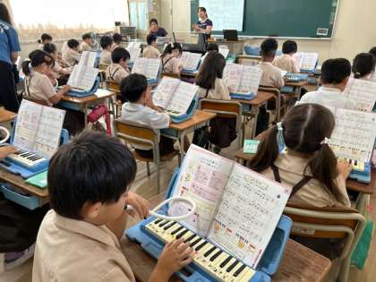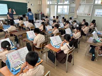 音楽「山のポルカ」は鍵盤ハーモニカを演奏しています。指づかいやリズムに気を付けて練習しています。