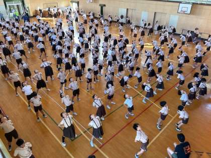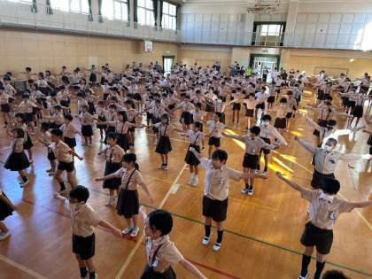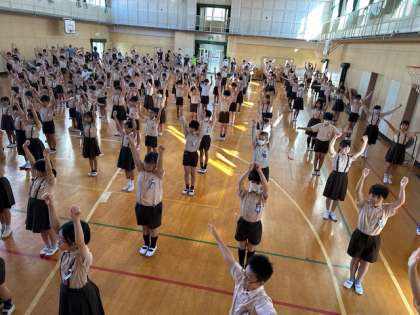 今朝の児童集会は全校でラジオ体操をしました。準備運動でしっかり体をほぐしていきます。